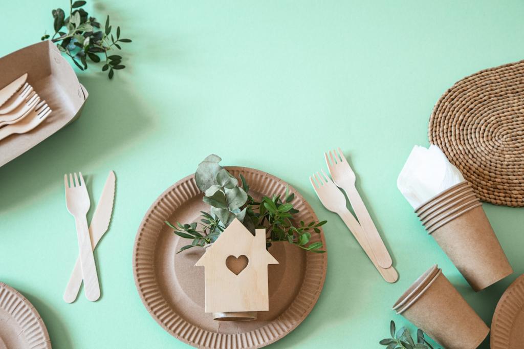 Nachfüllbare Spender aus Glas oder Edelstahl reduzieren Plastikmüll und wirken hochwertig. Ordne sie auf einem Holztablett, beschrifte minimalistisch und lade Gäste ein, ihre Lieblingsrezepte für Reinigungsmittel zu teilen.